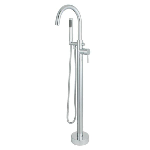 Bellaterra Home Floor-mounted bathtub faucet, a high quality polished chrome finish makes for endurance and beauty. The premier finishing process - finishes will resist corrosion and tarnishing through everyday use. A hand shower included handy for rinsing down the tub or just rinsing off after a bath. Solid brass core construction ensures years of trouble-free use. This beautiful tub faucet pairs well with any freestanding bathtubs for a clean look. Design details like a single handle for combined temperature and flow control, a subtlety extended curve shaped spout allows extended reach to tub fixture. This is a high quality faucet to be included to highlight the beauty of today's modern bathroom space.