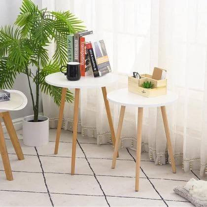 Elevate your living space with our Modern Minimalist Round Side Tables, perfect for bringing a touch of elegance to any room. The set of two nesting tables boasts a sleek, contemporary design that blends seamlessly with a wide range of decor styles. Crafted from high-quality materials, the sturdy MDF tabletop in a chic matte finish sits atop durable, powder-coated metal legs ensuring longevity and stability. Designed with versatility in mind, these side tables serve multiple purposes - from displaying your favorite decorative pieces to providing a convenient spot for your morning coffee or evening reads. The compact size makes them ideal for small living areas, while their nesting capability allows for easy storage when not in use, making them a great space-saving solution. Assembly is a breeze, with all necessary hardware included and straightforward instructions that ensure you'll have these stylish tables ready for use in no time. Whether placed beside a sofa, in a corner, or used as stand-alone accent pieces, these Modern Minimalist Round Side Tables are a functional and fashionable addition to your home.