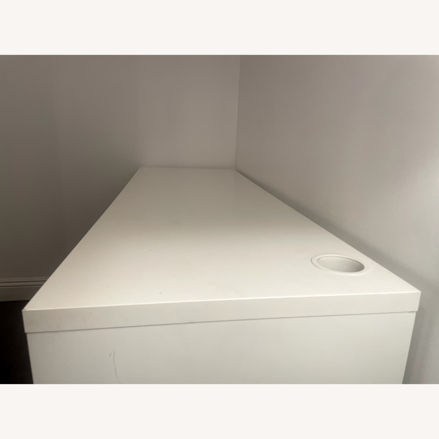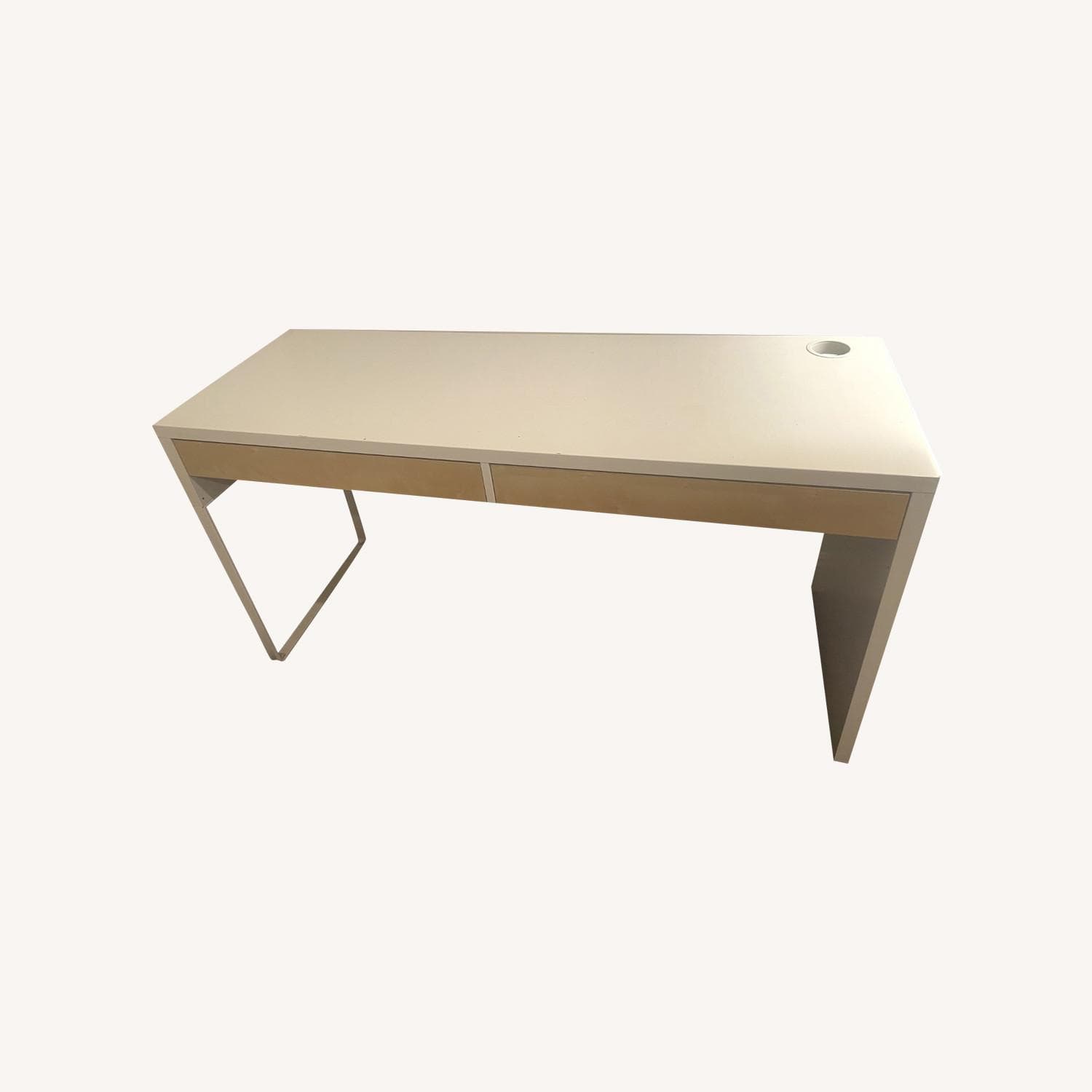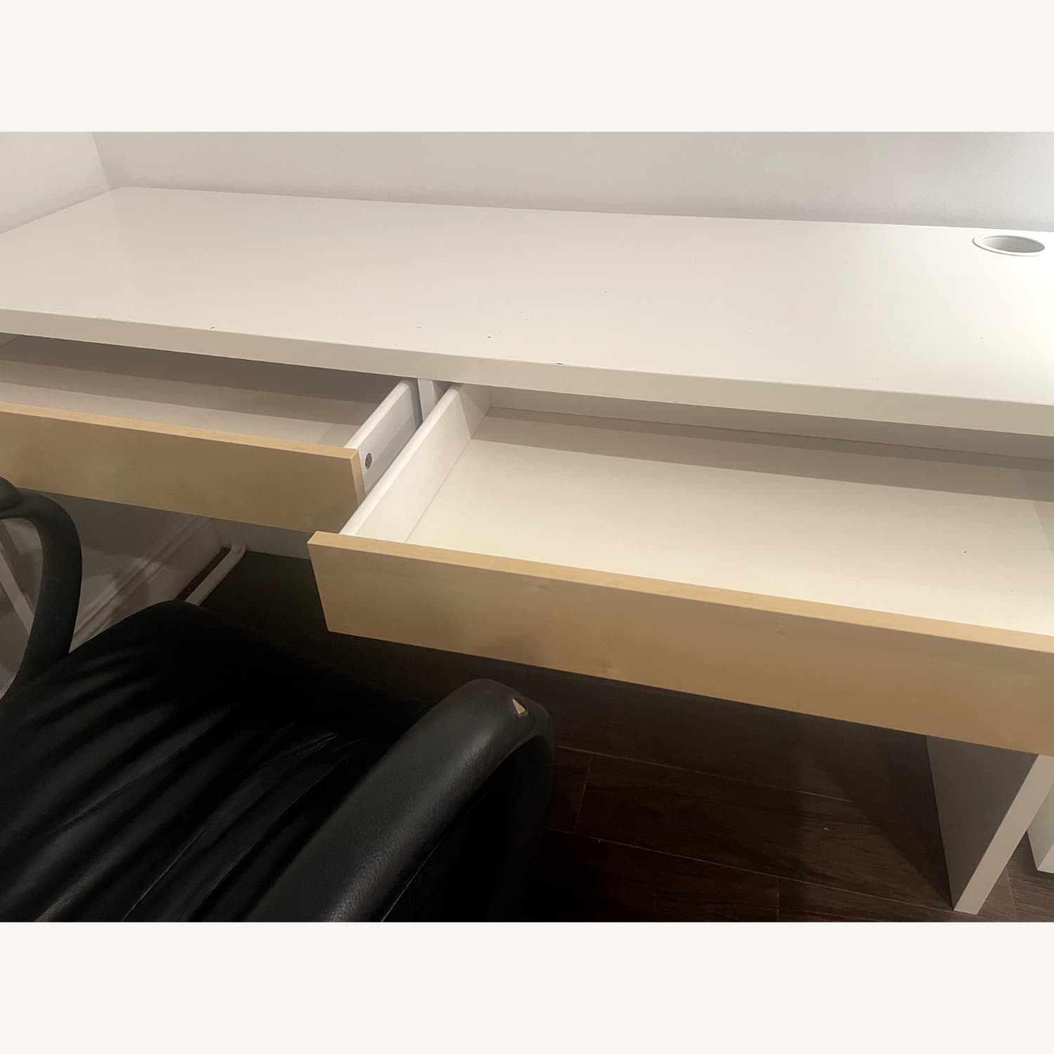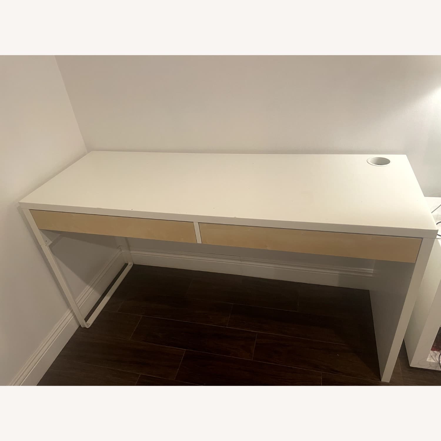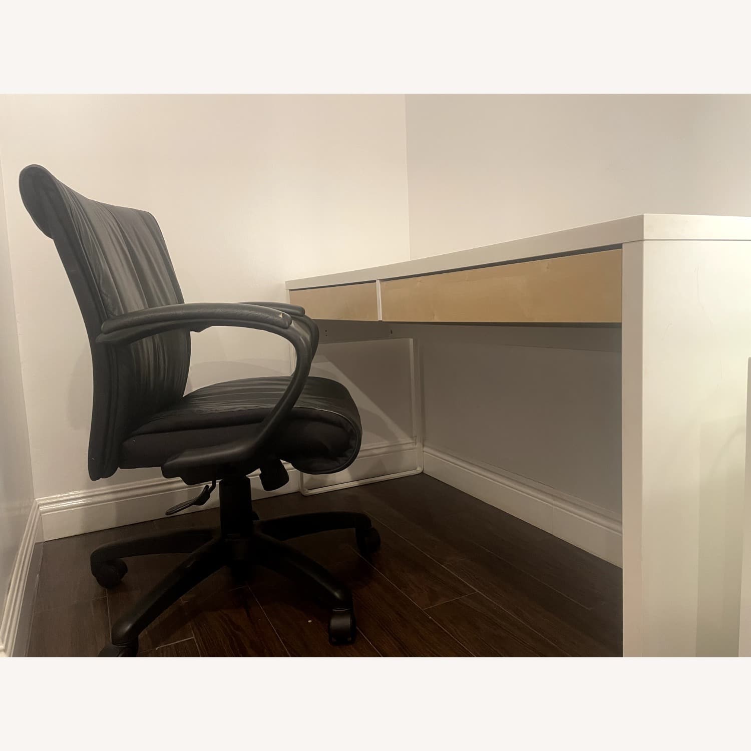 Sturdy, simple office desk-chair setup for sale with great discounted price (totally negotiable). The desk is long enough to place all of your supples: office lamps, textbooks, and other accessories. It comes with two drawers for internal storage and is wide enough for a desktop computer—but it has a couple of surface scratches from the previous owners. Perfect for studying or placing in a home office space. I bought it as part of a summer study setup for a college class, and now that I'm moving, I want to sell it as soon as possible. The chair will come free with the purchase.