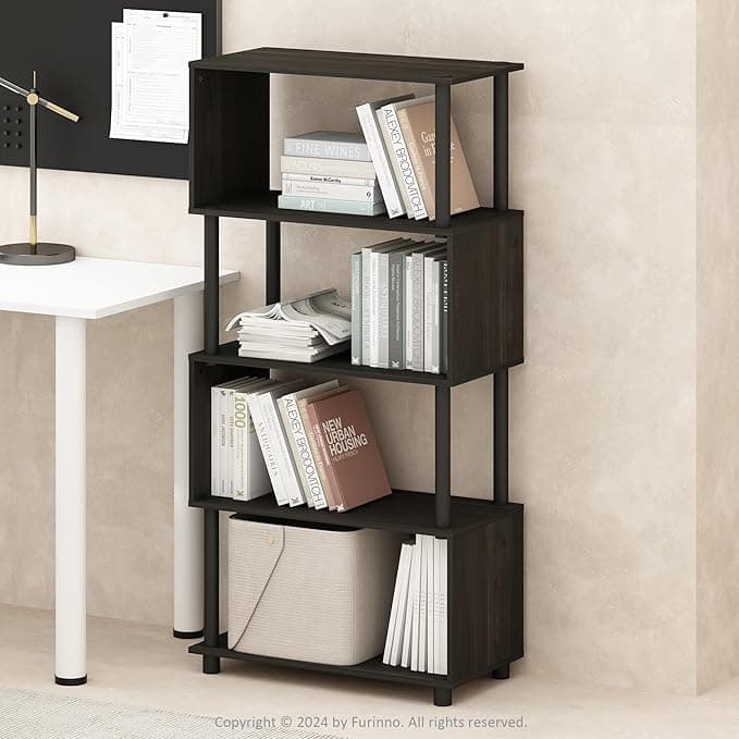 Furinno Reed 5-Tier S-Shaped Bookcase, Bookshelf, Espresso