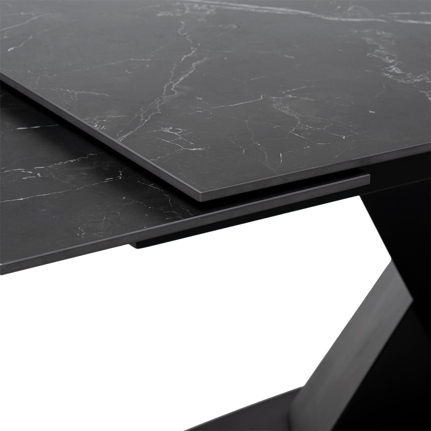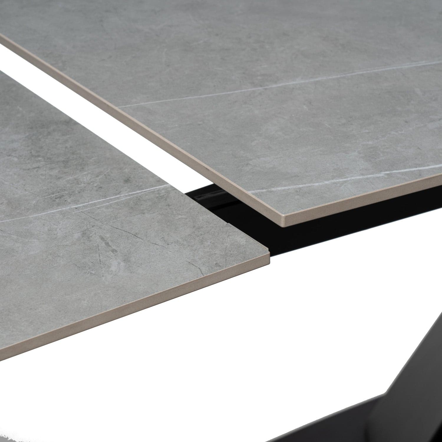 Utdragbart bord med 10mm massiv porslinsskiva i grå färg och svarta metallben. Utdragbart porslin. Storlek 160x90 cm (Öppen 200-240 cm) Porslin som är resistent mot repor, värme, eld, kemikalier etc. Hygienisk yta.