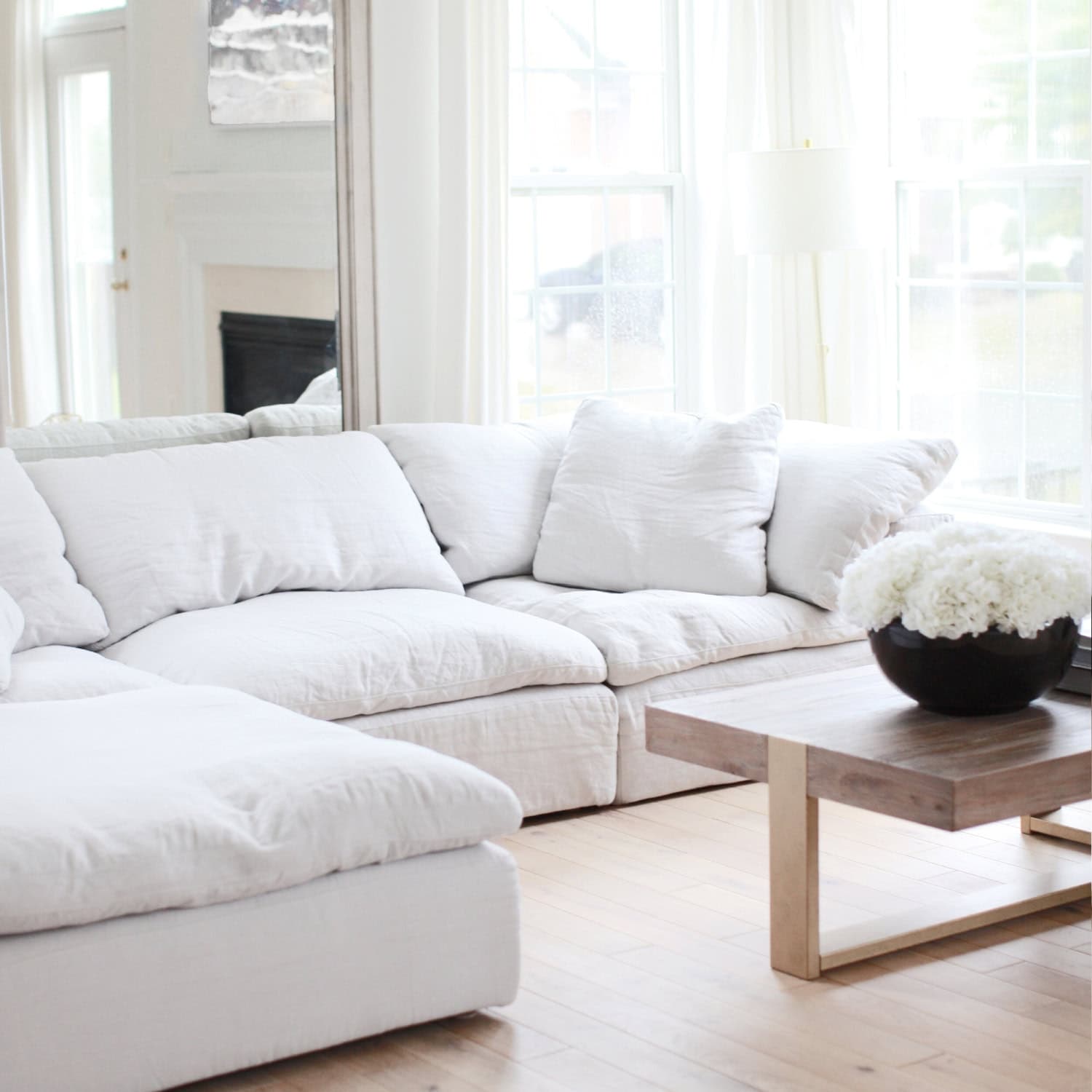 The Cloud Couch with Ottoman Replica is inspired by Timothy Oulton’s original design and is renowned for offering the best level of comfort and modern elegance. Crafted with a combination of high-density foam, PP cotton, and feathers, this sofa delivers a sink-in feel while maintaining support. Its modular, slipcovered cubes allow for endless configurations, making it perfect for versatile living spaces. Built on a durable frame of engineered and kiln-dried hardwood, it ensures both comfort and longevity. Make this piece yours and make your home truly yours. This ultra-premium replica is not affiliated with RH.