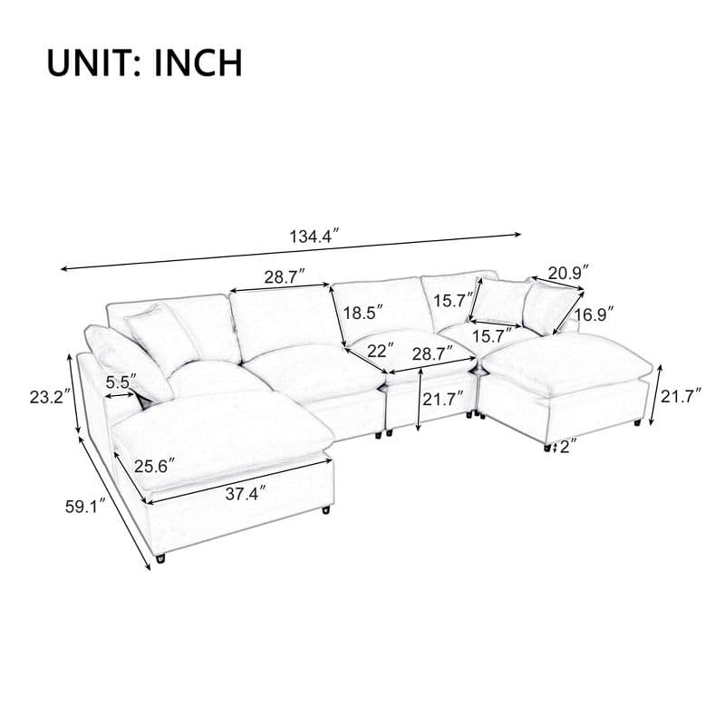 NicBex Modern 134.4" Sectional Sofa Modular U Shape Sofa Couch with 2 Removable Ottomans for Living Room Apartment