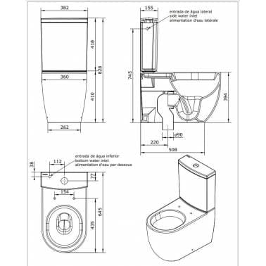 NO INCLUYE TAPA/ASIENTO NI CISTERNA. CISTERNAS COMPATIBLES: Cisterna baja con tapa y mecanismo de doble descarga Sanibold Unisan 137111004U. ASIENTOS: Asiento y tapa para inodoro (clipoff) con amortiguador modelo Sanibold Unisan 2373100U. Asiento y tapa slim para inodoro duroplast con amortiguador Sanibold Unisan 2376160U.