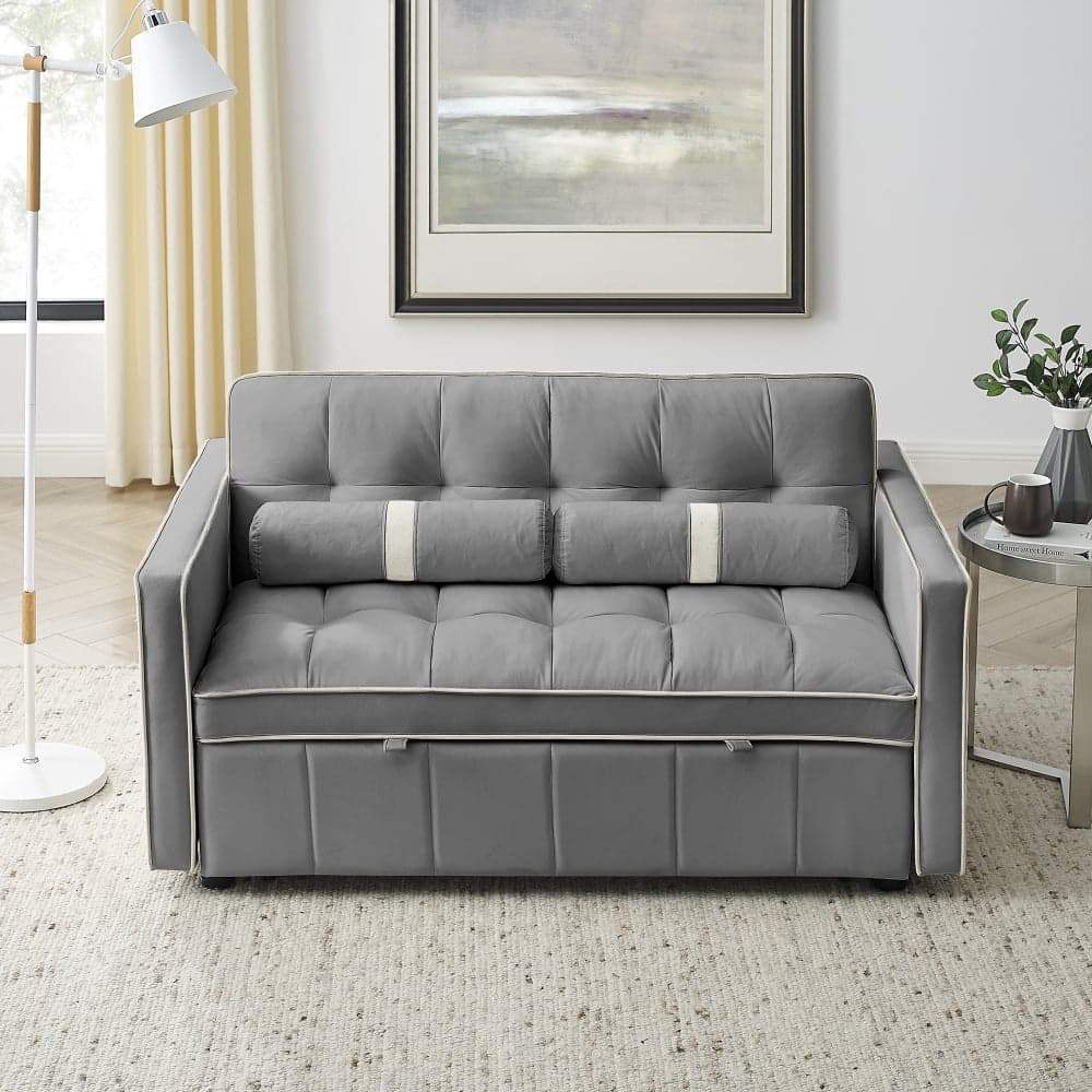 Buy 55.5" Modern Velvet Pull Out Sleeper Sofa Bed,Convertible 2 Seater Loveseats Sofa Couch with Side Pockets, Velvet Sleeper Bed with Adjsutable Backrest and Lumbar Pillows for Small Space(Gray) at Walmart.com