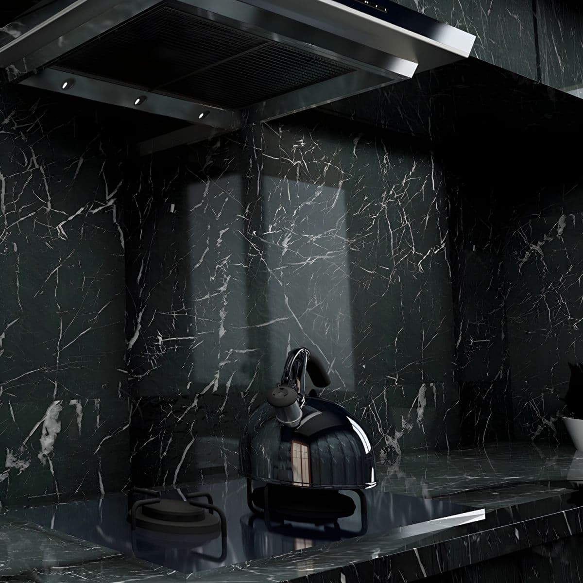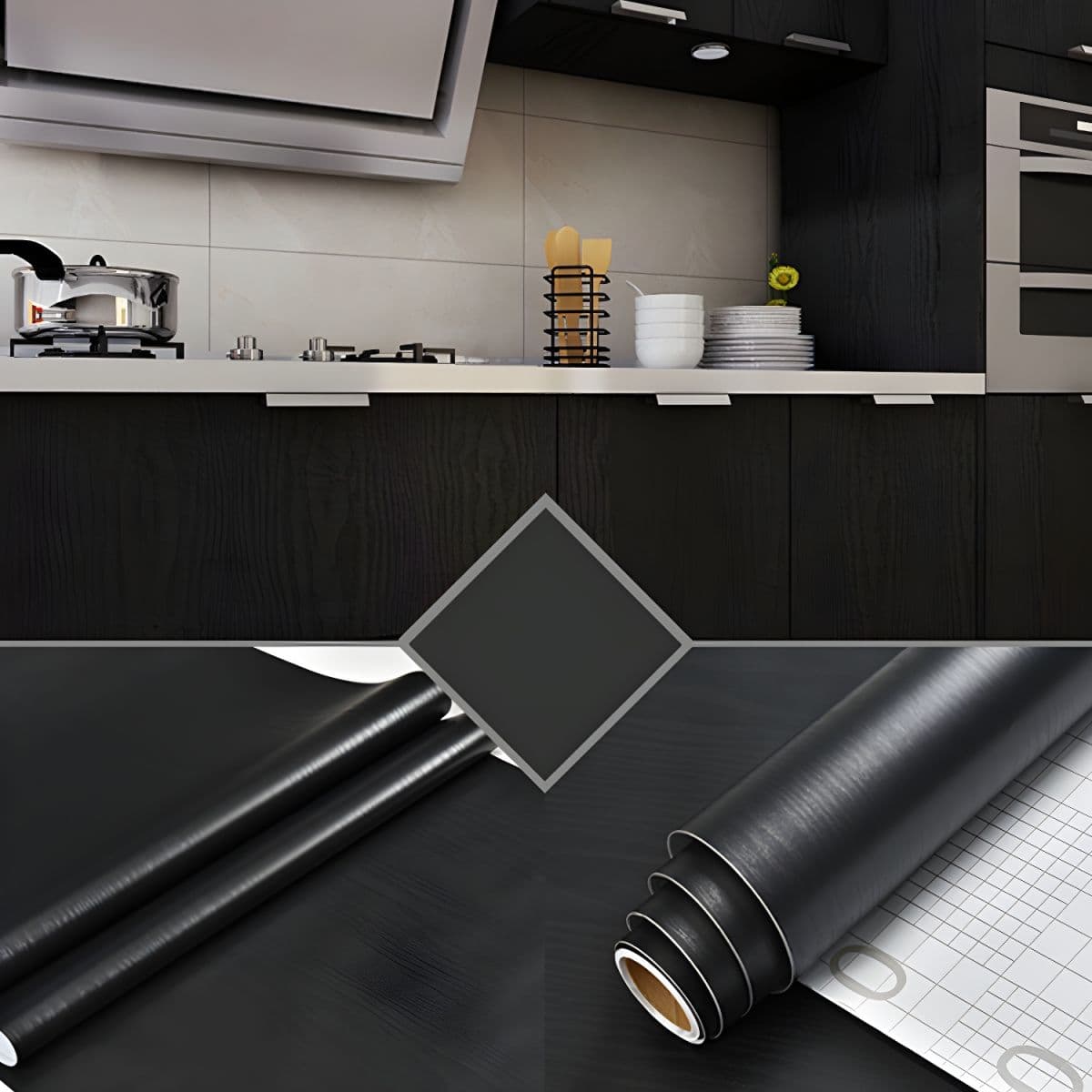 Rectangular PVC Field Tile Peel and Stick Wall Tile Backsplash Wall - Matte Black 197"L x 24"W
