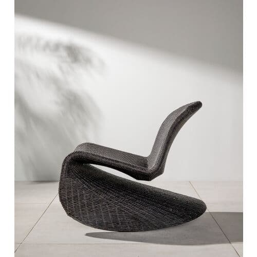Inspired by a vintage design, this rocking chair features all-weather wicker seating with bold curves. Store indoors during bad weather and when not in use.