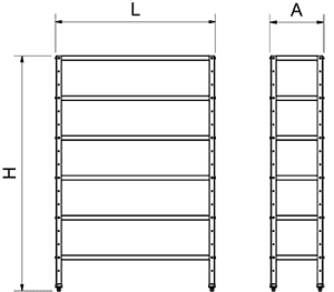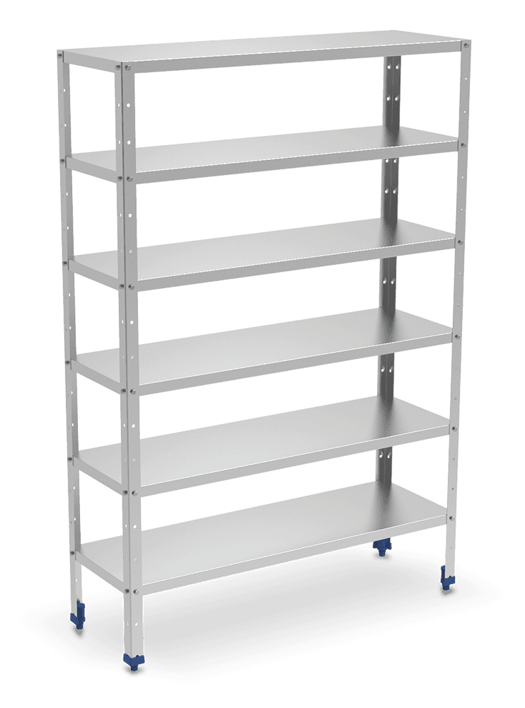 Stainless steel shelving unit 6 levels with 1,5 mm thick shelves