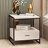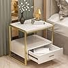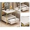 ¿Alguna vez has sentido que cada nivel de estante es demasiado corto para contener algunos artículos altos? Esta mesa auxiliar satisface muy bien tus necesidades. El segundo divisor es más alto, perfecto para artículos grandes. Nombre del producto: Mesita de noche, Material: Madera. Tamaño: 17.7x15.7x19.7 in, 19.7x15.7x19.7 in. Color: negro-blanco, dorado-negro, dorado-rosa, dorado y blanco. Características: 1. La mesita de noche con cajones y una mesa. Puede almacenar teléfonos móviles, cuadernos, revistas, controles remotos de TV, cables de carga, cajas de joyería, auriculares u otros artículos del hogar. 2. Práctico diseño de almacenamiento, utilizando una combinación de cajones huecos y de almacenamiento, para satisfacer las necesidades de diferentes clientes. 3. La encimera está hecha de mármol natural, que es seguro y hermoso, y se combina perfectamente con el marco de hierro, añadiendo un sabor artístico a tu habitación. 4. Silenciar el carril de guía, después de millones de experimentos, tirón suave, cierre sin ruido.