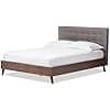 Baxton Studio Alinia Mid-Century Retro Modern Fabric Upholstered Walnut Wood Platform Bed, Full, Grey