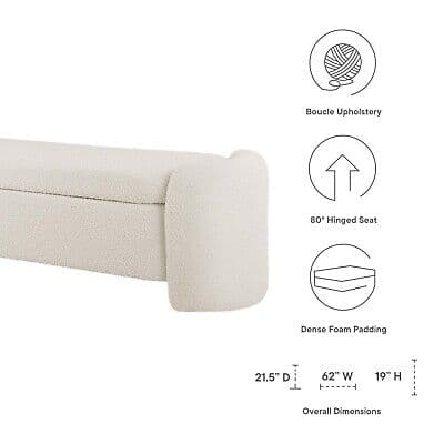 Modway Nebula Boucle Upholstered Storage Bench in Ivory