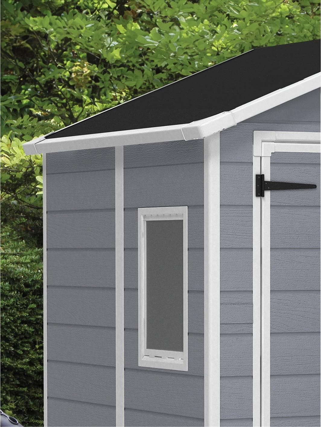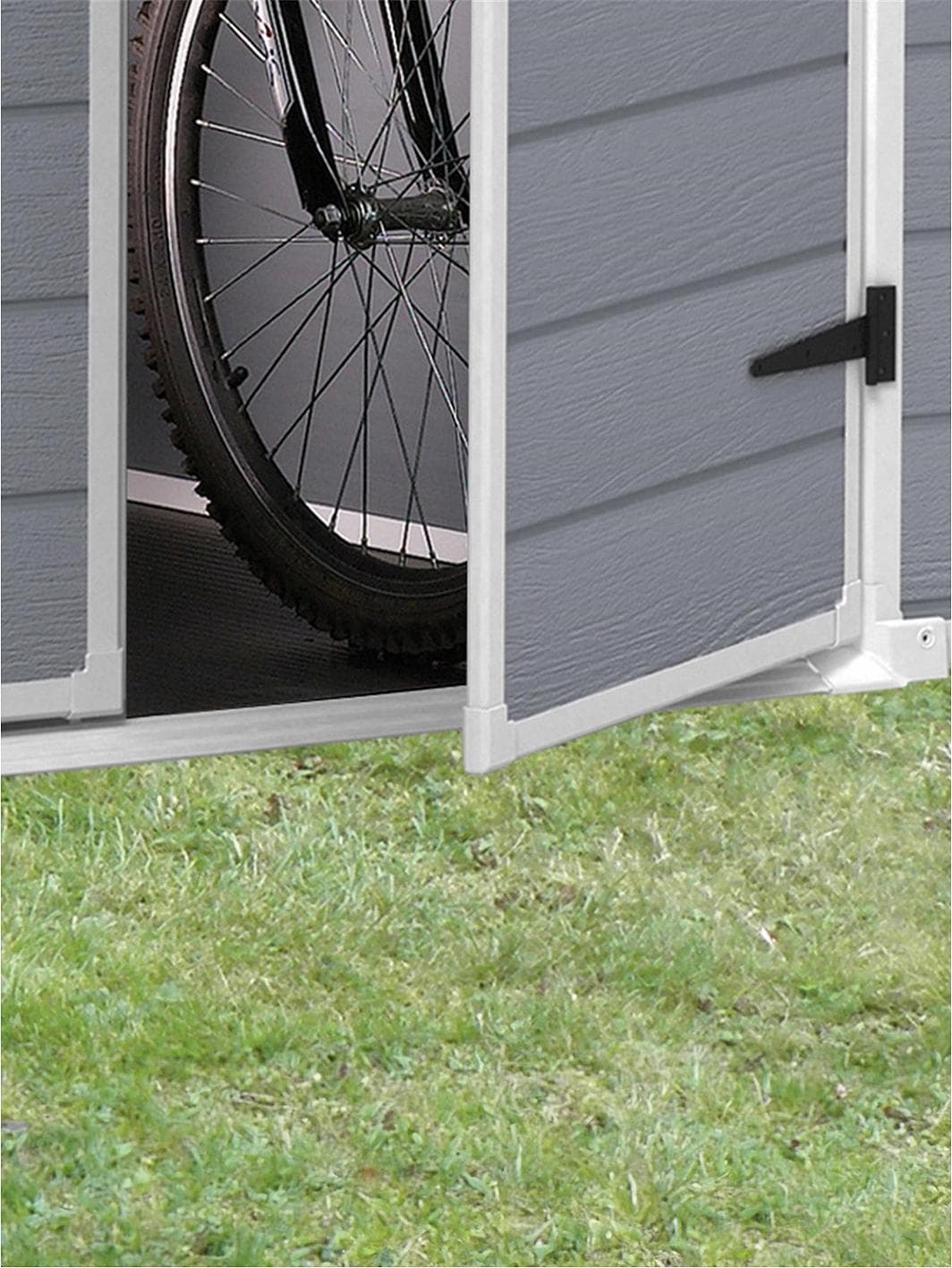 Keep your outdoor spaces organised with the Keter 6x8 ft Apex Manor Resin Garden Shed. The Manor is a durable storage shed with a double wall construction that is fully weather-resistant. It also features double doors for easy access, floor panel, built-in ventilation for safety, a fixed window for natural light and has a locking system to provide added security for your items. Ideal for small to medium gardens, the Manor Shed is ideal for storing garden tools, furniture, BBQs, bikes and outdoor toys. Keep your garden clutter free and your items protected. Depth: 237 CM Height: 227 CM Width: 186 CM Suitable for all weather conditions and will not peel, rust, rot or decay. Sturdy build makes this shed ideal for storing a wide variety of items. Floor panel keeps items off the ground to help keep them clean and dry. Window provides natural light while ventilation provides added safety. High enough ceiling for an adult to move around in with ease. Easy to assemble.
