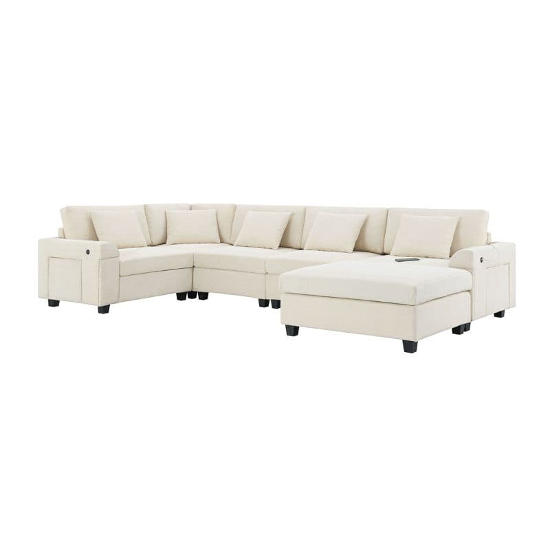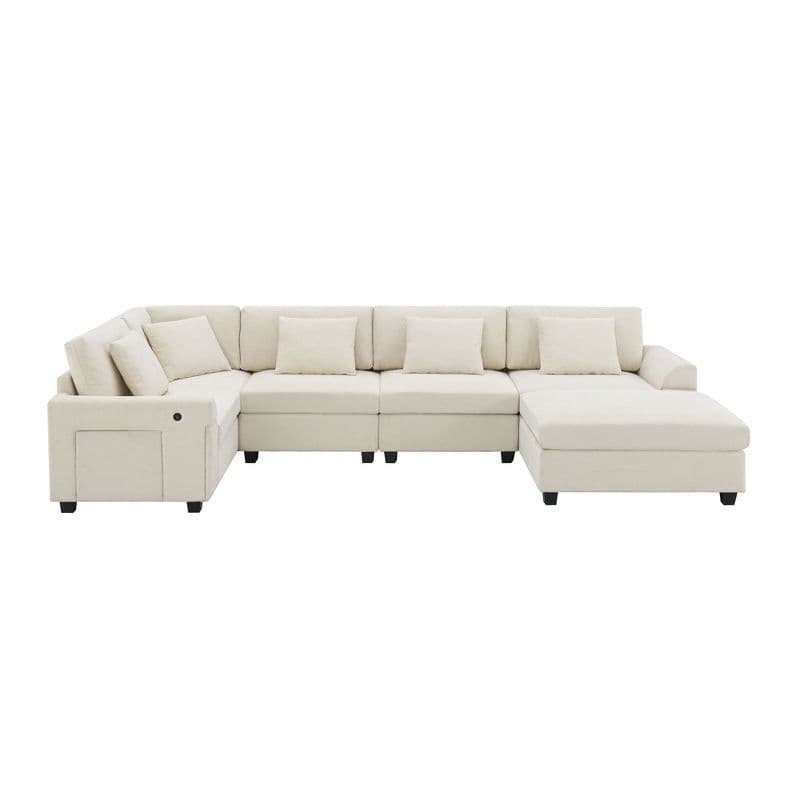 Nicbex Modern 128" Chenille Sectional Sofa Modular U Shape Sofa Couch With Ottoman And Cup Holders For Living Room Apartment, White