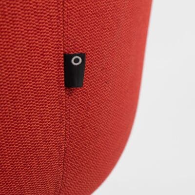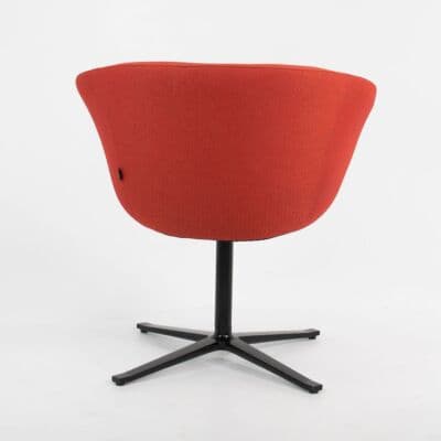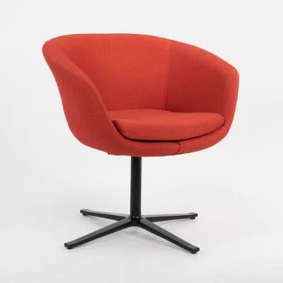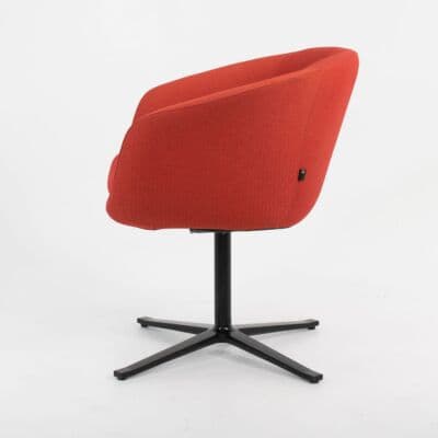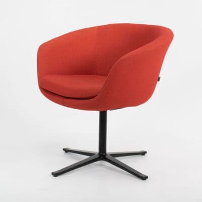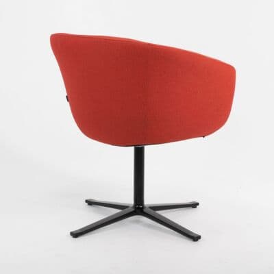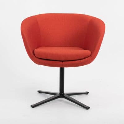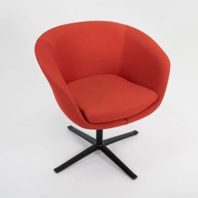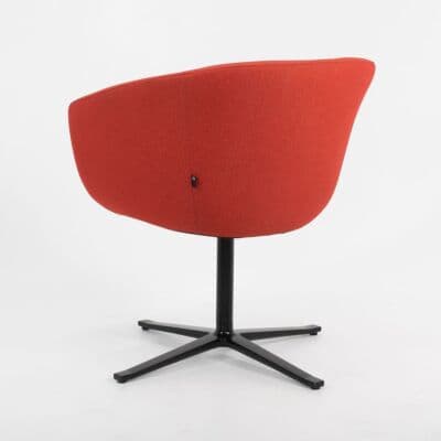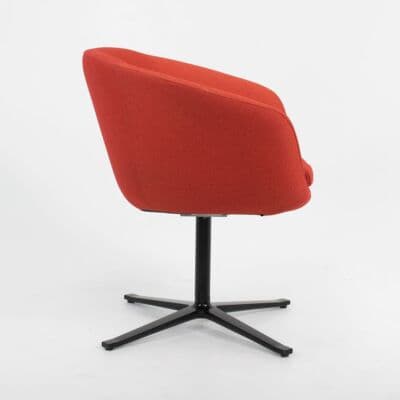 This is a 'Bob’ Guest Swivel Chair, Model 231, designed by Luke Pearson and Tom Lloyd of Pearson Lloyd for Coalesse and Walter Knoll in 2014. The listed price includes one chair. The chairs sport a red/orange fabric, and are mounted on 4-star swivel bases in aluminum with a black satin finish.