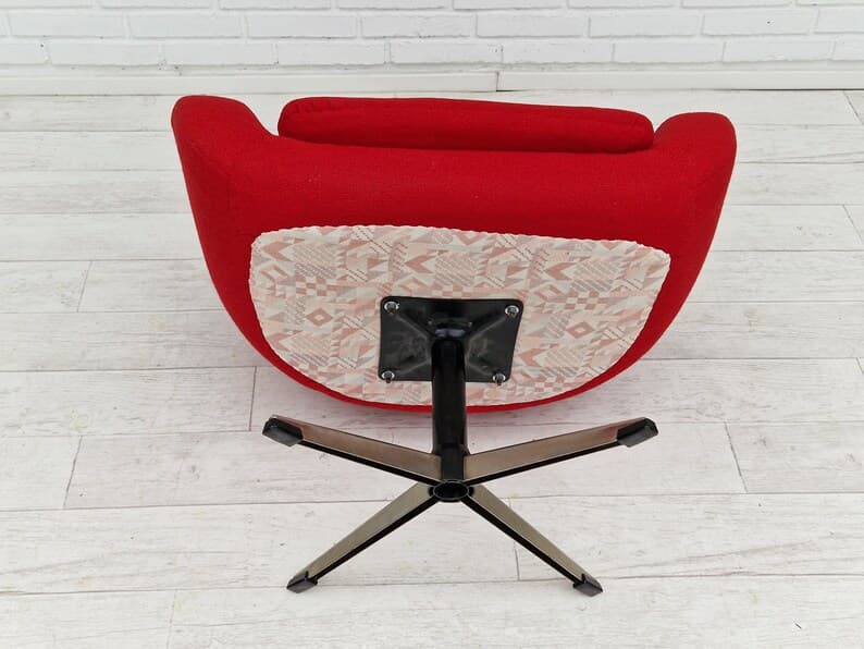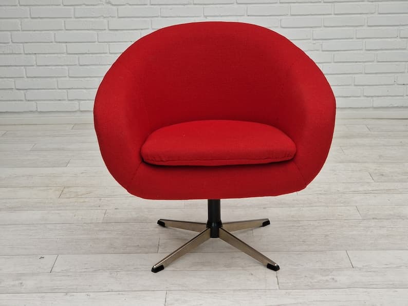 This Chairs item by retrogalleri has 7 favorites from Etsy shoppers. Ships from Denmark. Listed on Jan 12, 2025. 1960s, Scandinavian design by Karl Eric Klote for Overman. Mid-Century swivel lounge chair in red wool KVADRAT upholstery. Removable cushion and chrome swivel base. Reupholstered and hand sewn by craftsman. Chair has no defects, but it may show slight traces of use. FREE DOMESTIC SHIPPING TO OTHER COUNTRIES: Shipping price depends on the country.