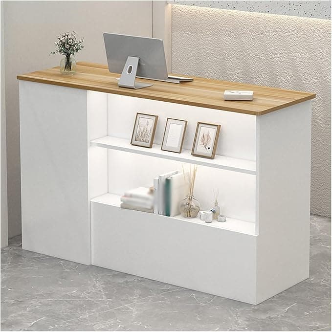 BYJSJY Reception Desk with Counter, Front Desk Reception Counter, Retail Counter Display Shelf & Lockable Drawers, Checkout Counter, for Salon Reception Room Checkout Office (Color : E-2, Size : 120