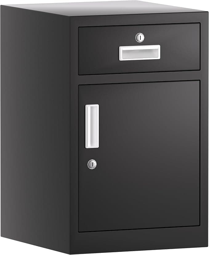 Metal Vertical File Cabinet with Lock - Small Filing Cabinet for Home Office with Drawer, Under Desk Storage Solution, Locking Security Cabinet for Files and Documents