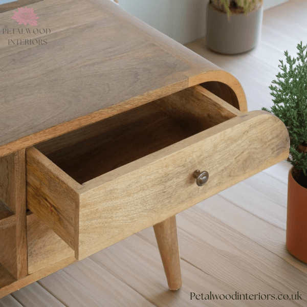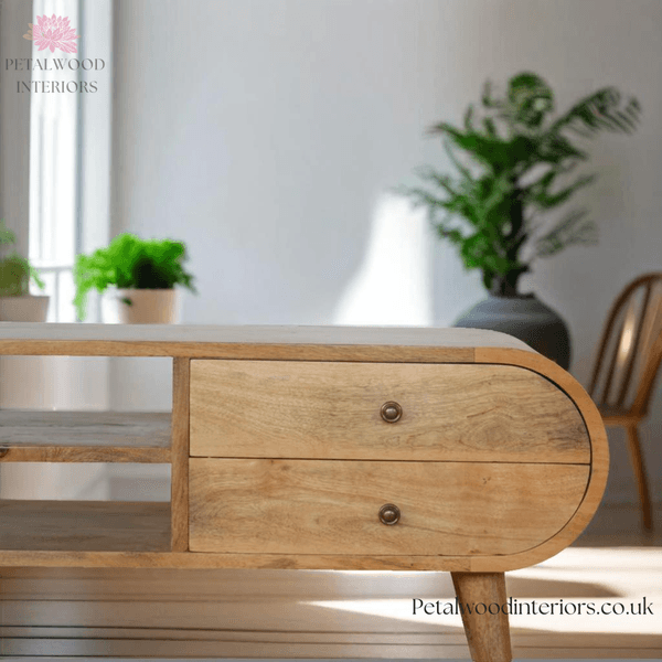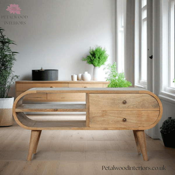 Rounded Solid Wood - Media Unit - 2 Drawers - 44cm Height