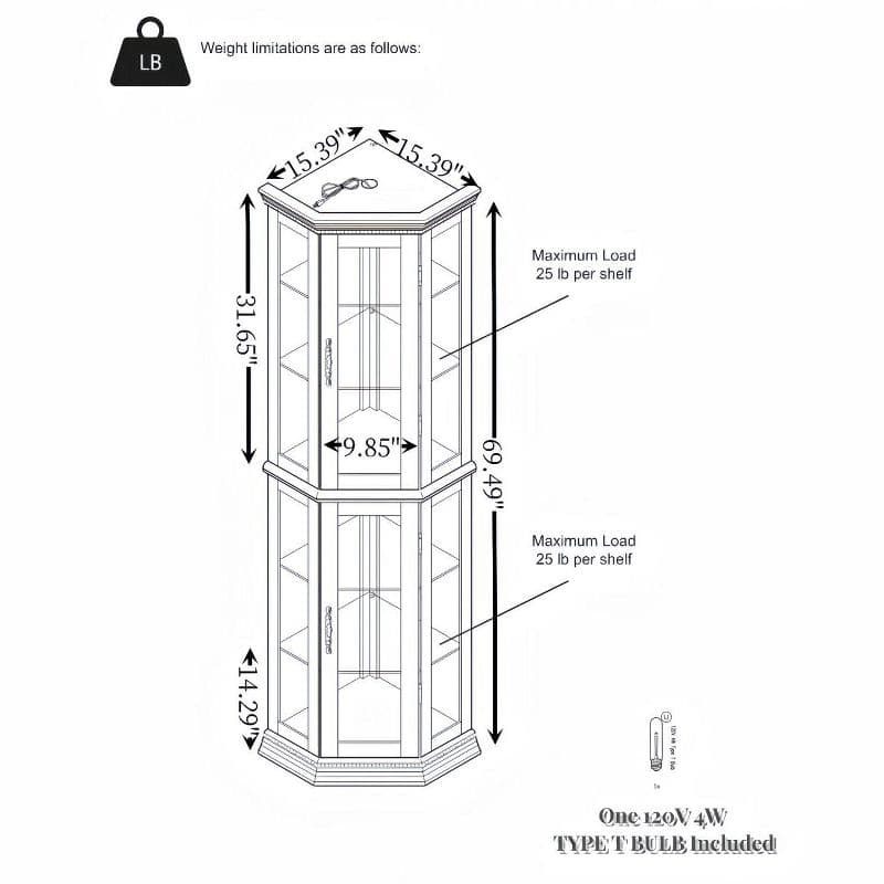 Introducing our Elegant Glass Corner Curio Cabinet, a fusion of classical design and modern functionality that elevates your space with its natural and classy appeal. This glass curio cabinet is a masterpiece of elegance, featuring glass doors and classical metal handles that exude sophistication. Perfect for showcasing collectibles like figurines and vintage books.