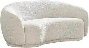Curl up and relax on this Maklaine cream boucle fabric. This wide, rounded is as comfortable as it is stylish, making it an excellent addition to your living space. Rich cream boucle fabric upholstery gives a soft touch against your skin and its deep plush cushion provides you with cozy support. Its rounded back is both chic and homey, with its contemporary design sure to add flair to your modern home. Features: Material: Boucle fabric Finish: Rich cream Rounded back Contemporary design