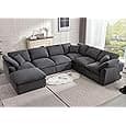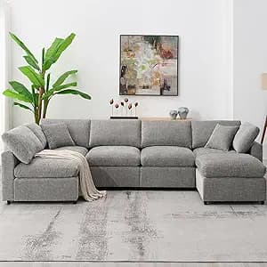ONEMMLION 130" Modular Sectional Sofa Cloud Couches for Living Room, Convertible Oversized Sectional Sleeper Sofa Bed, Modern Deep Seat Comfy Fluffy Chenille 6 Seat U Shaped Couch with Ottoman, Grey