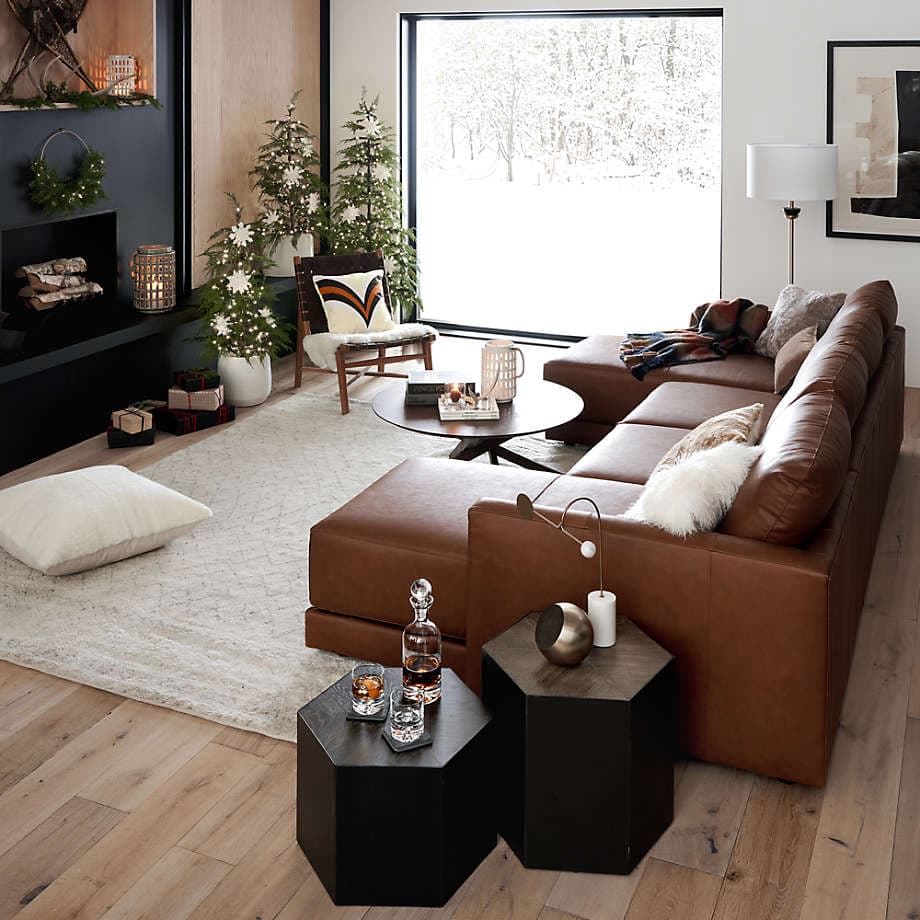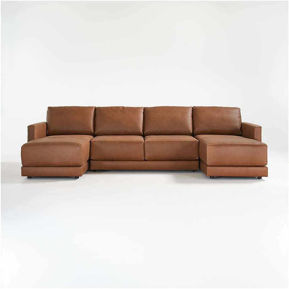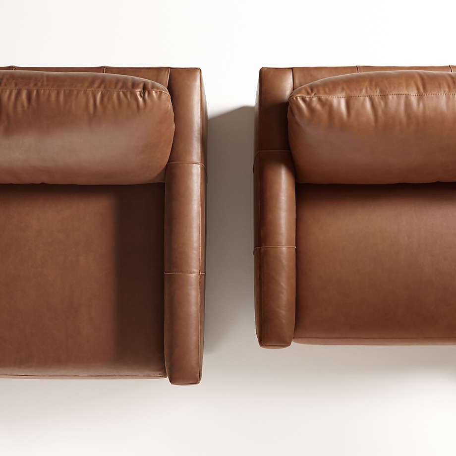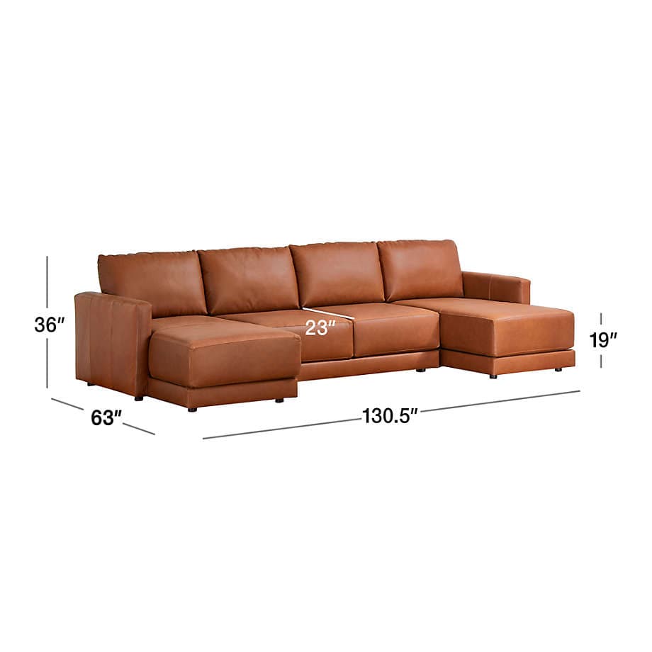 Everyone's invited to Gather. Clean-lined and current, our Gather sectional is covered in buttery Italian-made leather. Similar to that used in high-end handbags and apparel, the leather is tanned, buffed and ironed to create a silky surface that's supple, rich and luxurious to the touch. Sized for smaller rooms, the three-piece sectional armless loveseat plus left- and right-arm chaises strikes the perfect balance between modern style and comfort with thin decks that put all the focus on the boxy, extra-plush seat cushions that sit comfy but not too deep.