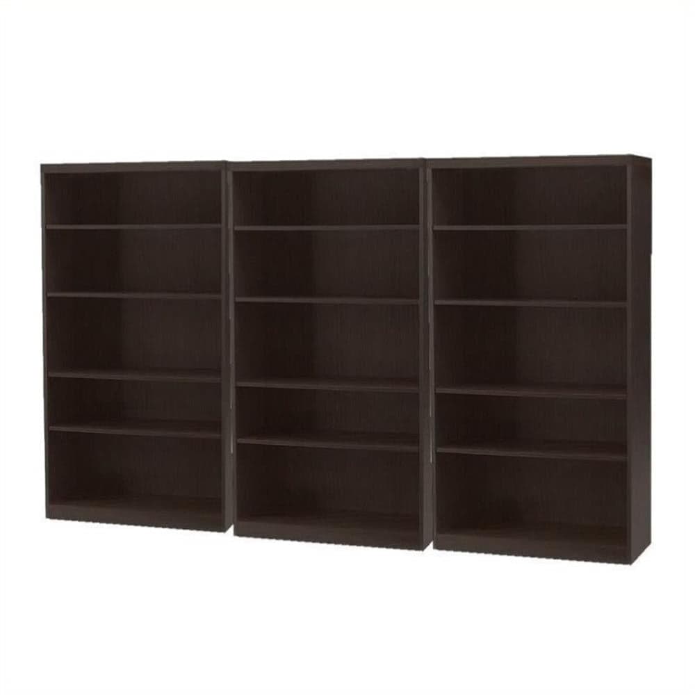 Mayline Aberdeen 5 Shelf Wall Bookcase 3 Piece Set in Mocha