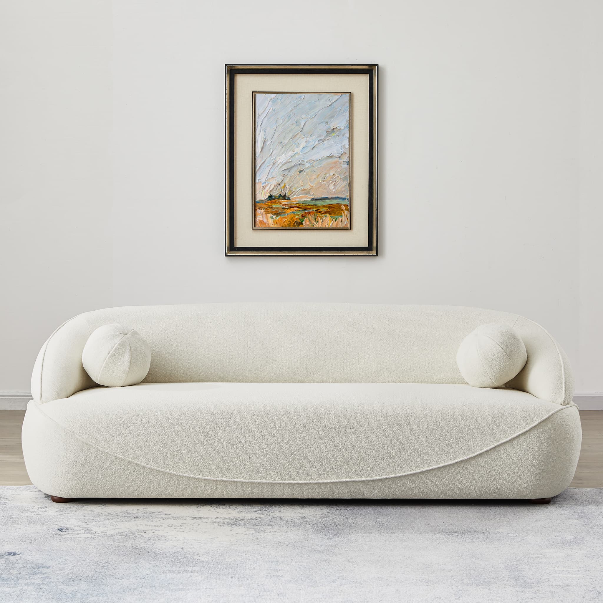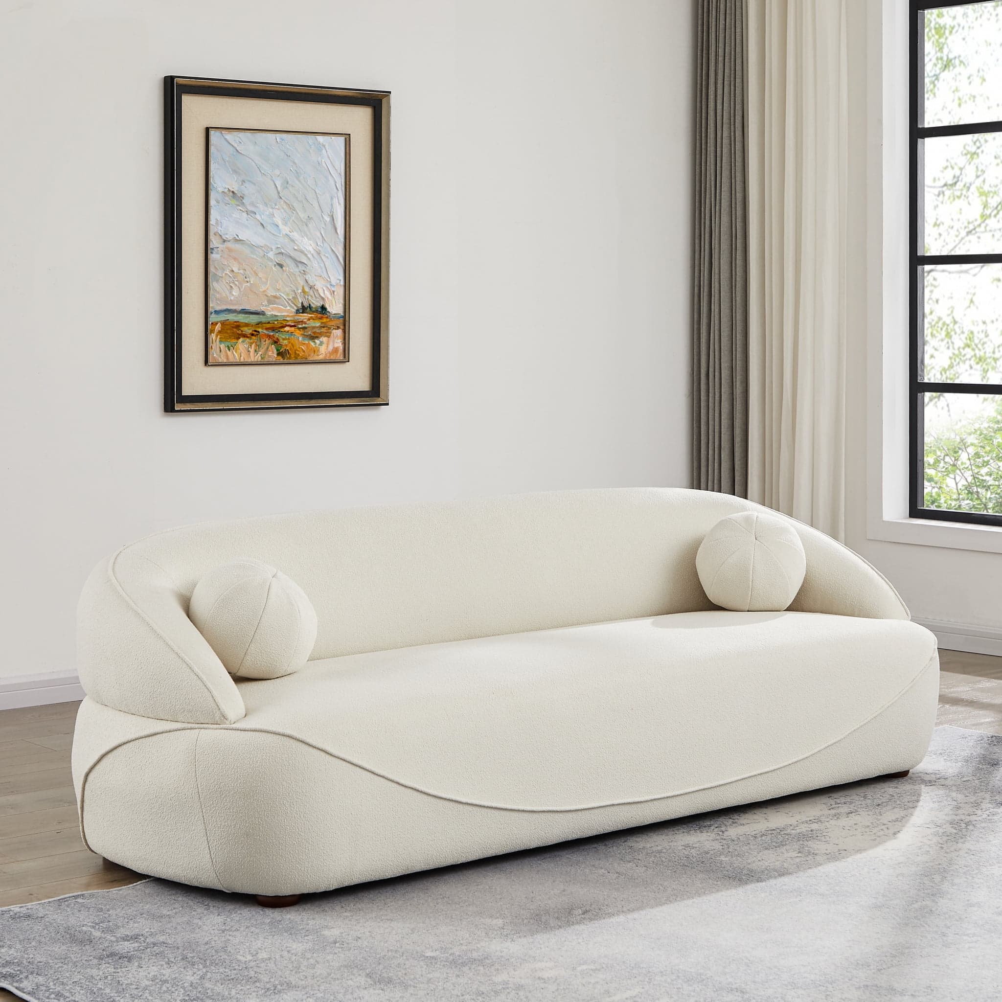 Ashcroft Modern Luxury Japandi Boucle Fabric Curvy Sofa with Removable Legs, Ivory