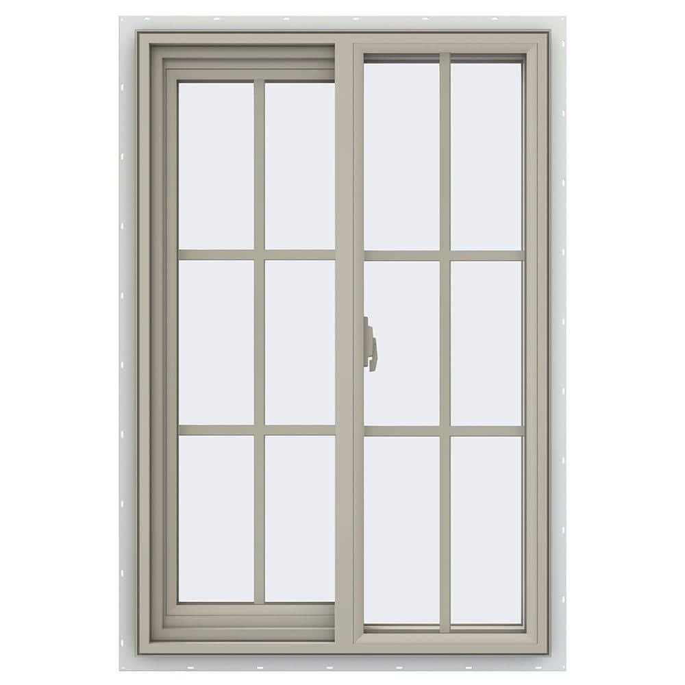 JELD-WEN 23.5 in. x 35.5 in. V-2500 Series Desert Sand Vinyl Left-Handed Sliding Window with Colonial Grids/Grilles