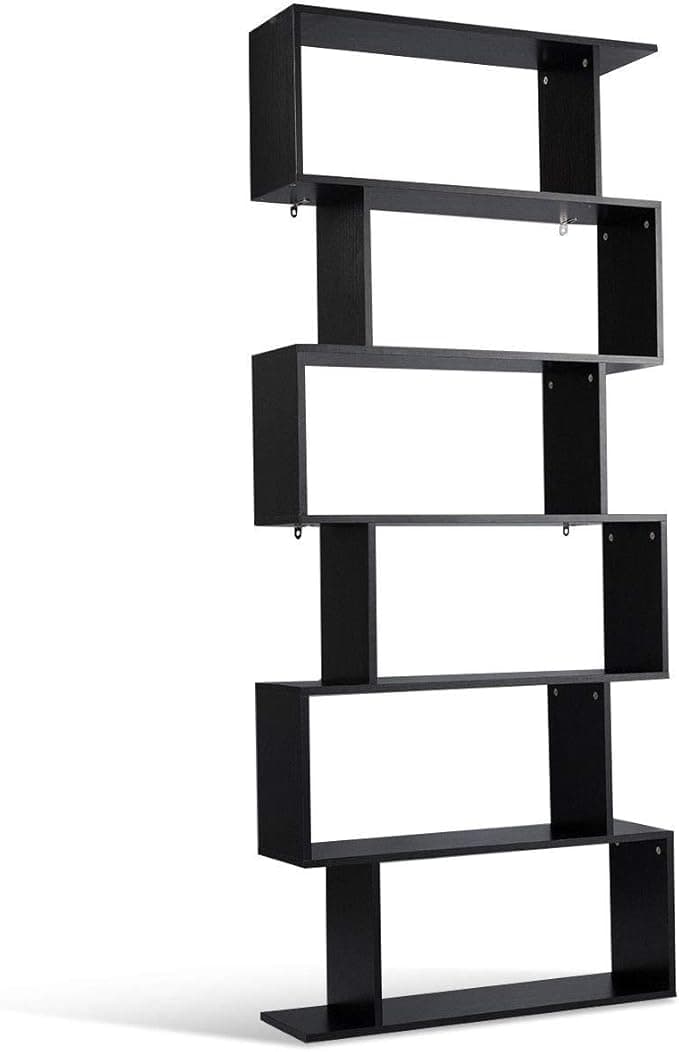 Black S-Shaped 6 Tier Open Concept Bookcase Modern Bookshelf Storage Shelves Perfect for Storing Books Photos Favorite Decorative Items Display Ideal for Home Bedroom Living Room Office Use