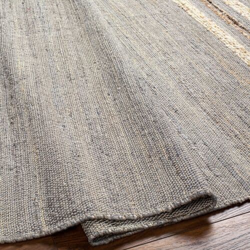 Crafted from jute and wool, the handwoven flat-weave design offers both softness and durability. Its striped borders and tonal changes add richness and depth, enhancing both traditional and modern rooms. Using a rug pad is suggested to prevent slipping and prolong its lifespan.