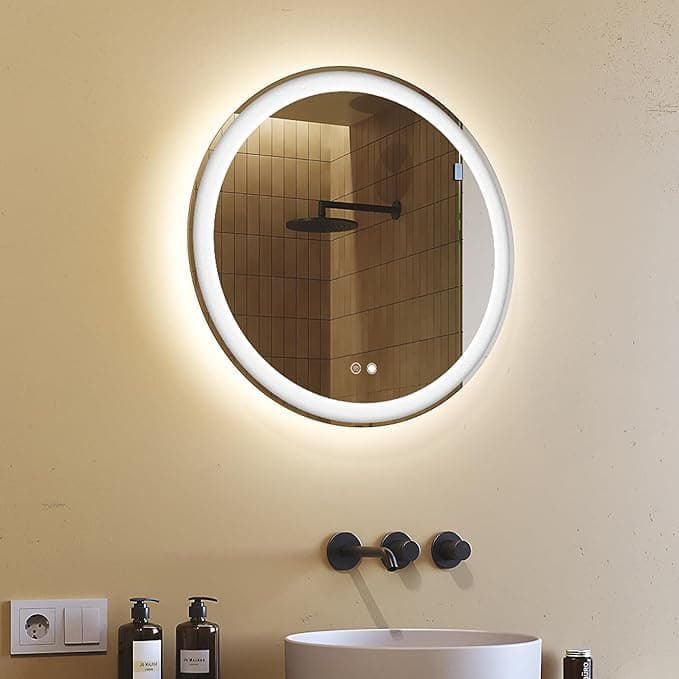 ✅【Espejo de baño redondo con iluminación LED】Espejo de 60 cm de diámetro con iluminación LED fabricado con materiales de la más alta calidad por un fabricante europeo. ✅【Ajuste de la temperatura de color LED 2700K-6000K】La función dual LED permite cambiar entre luz fría, neutra y cálida, permitiendo ajustar la iluminación perfectamente a cada situación. ✅【Interruptor táctil】El interruptor táctil permite encender y apagar fácilmente la iluminación LED con un solo toque, garantizando un confort diario. ✅【Alfombrilla calefactora】Nuestro espejo LED con función antivaho, activado por el interruptor táctil, garantiza un reflejo claro incluso después de una ducha caliente.