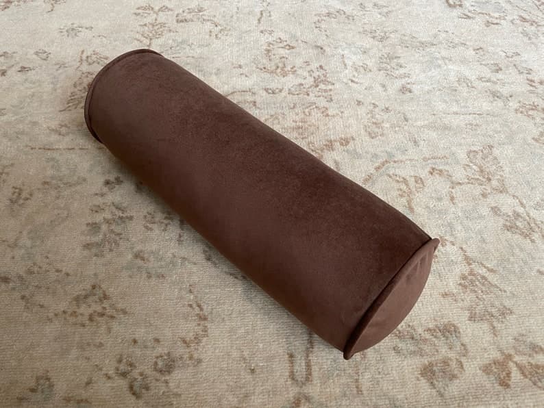 Brown bolster velvet cover, Brown velvet pillow, Brown cyclinder pillow, Neckroll pillow