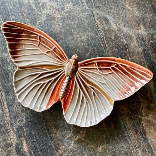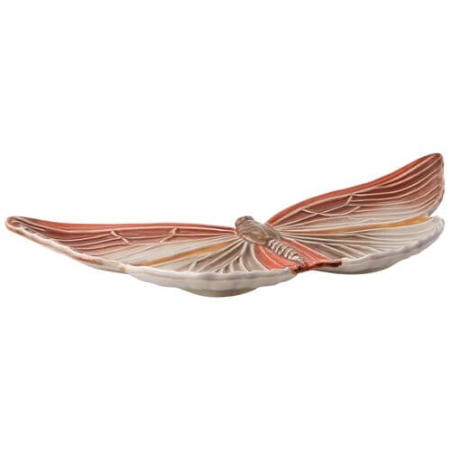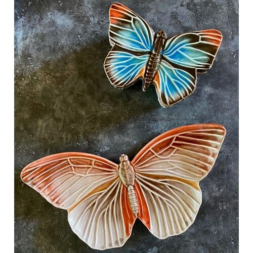 Claudia Schiffer teamed up with Bordallo Pinheiro to create this earthenware wall piece shaped like a butterfly, hand-painted for a seamless color blend that highlights its intricate details.