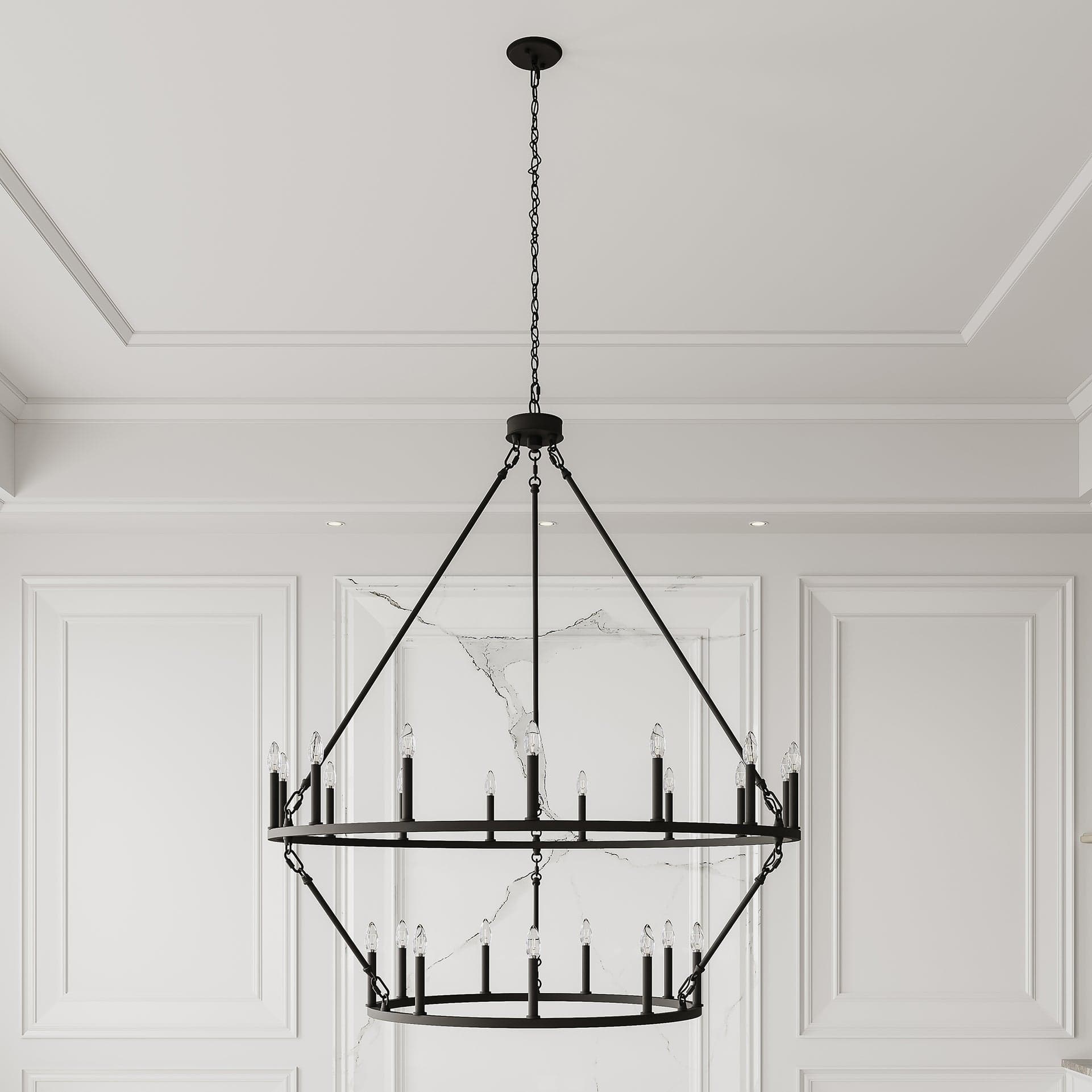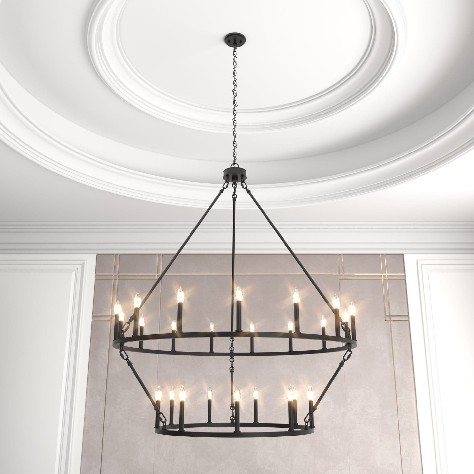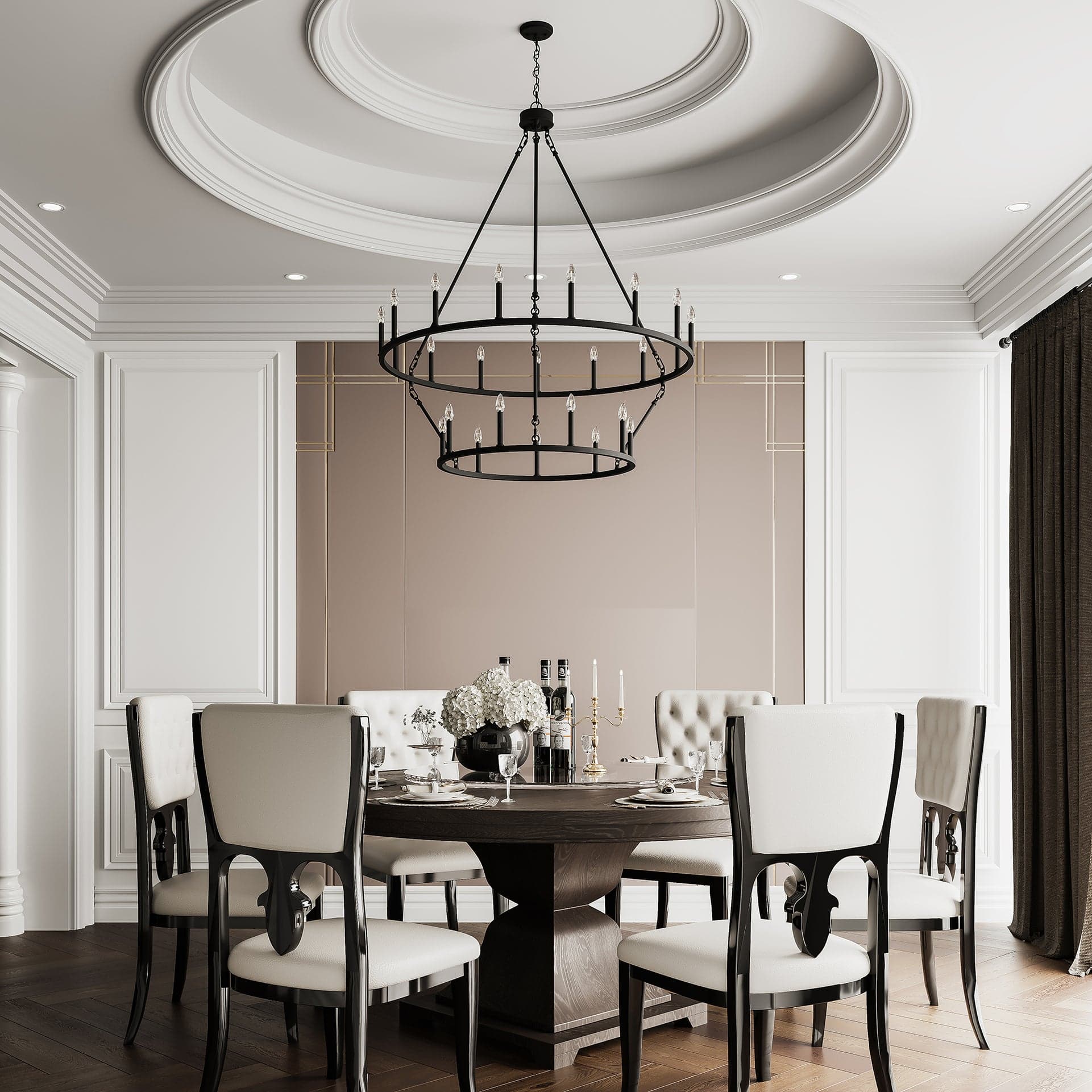 Ce lustre à 24 lumières en forme de roue de chariot de style bougie est simple et généreux. Convient aux meubles de style rétro, de style industriel et de style ferme, durable et facile à assortir. Nous aimons particulièrement ce lustre pour sa polyvalence personnalisable : pour un look moderne, essayez les ampoules à culot bâton et pour un style vintage, choisissez les ampoules à culot bougie. Convient aux grandes scènes, salons, chambres, entrées, tables à manger, etc. Mieux encore, ce lustre est compatible avec les plafonds en pente et les variateurs d'intensité, et dispose même d'une hauteur réglable pour une polyvalence maximale.