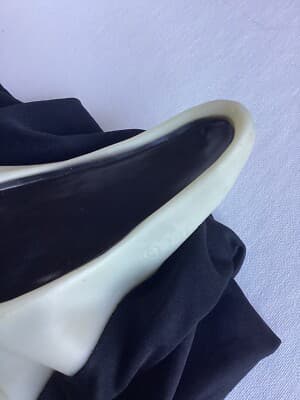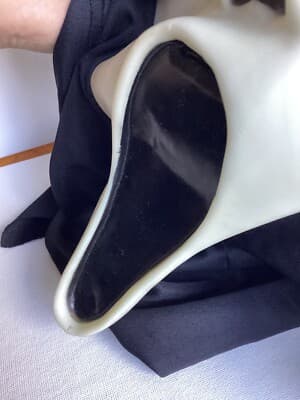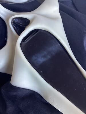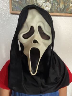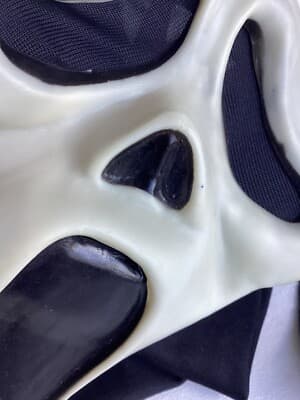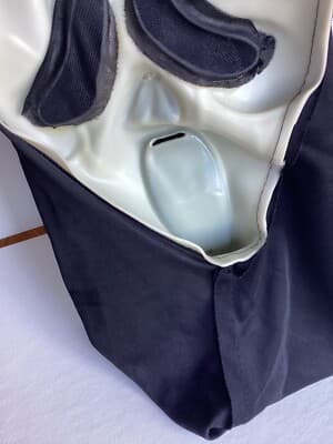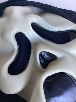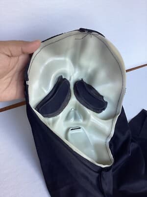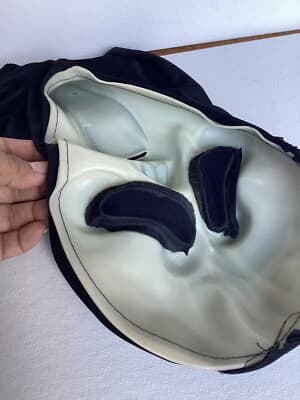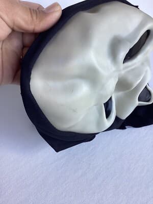 The mask is in fair condition! It is bent and has a small mark under mouth (not so visible) as shown in pictures. light wear marks around mask. It does glow in the dark but it’s not so strong of a glow. Overall a one of a kind mask! A great addition to your collection! ***please view photos for accurate visual of item, NO returns will be accepted for this item. Feel free to message me with any questions before purchasing. Thank you :) ***