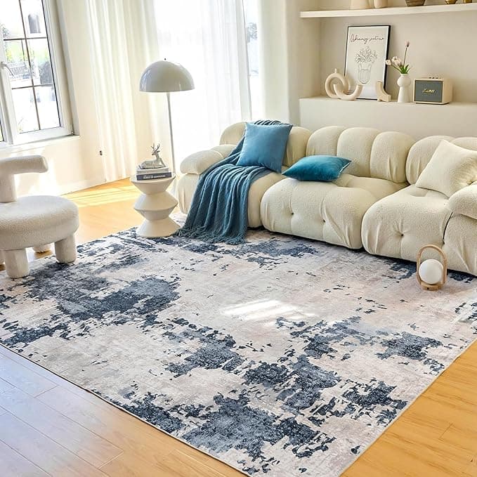 Buy OIGAE Modern Abstract Area Rug 8x10 - Soft Durable Low-Pile Machine Washable Rug with Non-Slip Backing, Stain Resistant for Living Room, Bedroom, Dining Room, and High-Traffic Areas, Tie-dye Blue: Area Rugs - Amazon.com ✓ FREE DELIVERY possible on eligible purchases