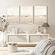 InSimSea 3 Pcs Framed Canvas Wall Art, Living Room Neutral Abstract Art, Bedroom Wall Decor Above Bed, Modern Abstract Coastal Beige Decor, 16x24inch, Set of 3