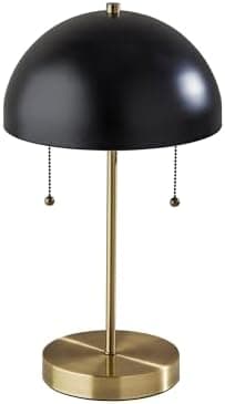 La lámpara de mesa Bowie de 18 alturas ilumina el diseño de inspiración vintage en una mezcla de latón antiguo y acabados negros. Con su simetría geométrica y estilo art deco, es la pieza perfecta para escritorios, mesas auxiliares o mesitas de noche. Cuenta con una elegante pantalla de cúpula de metal en acabado negro que se curva como un toldo sobre el delgado pedestal de la lámpara y la base redonda, ambos con un acabado de latón antiguo. Para un acceso cómodo a la alimentación directamente desde tu escritorio o mesa, la base de 6.5 pulgadas de diámetro cuenta con una toma de CA. Ya sea que la lámpara esté encendida o apagada, la salida de CA seguirá funcionando normalmente. Operada por cadenas de doble tracción en acabado de latón antiguo para encenderla o apagarla fácilmente, la lámpara alimenta dos bombillas de 40 W (no incluidas) y cuenta con un cable transparente de 5 pies. La lámpara de mesa Bowie también está disponible con un acabado blanco, azul pálido o rosa pálido en la pantalla.