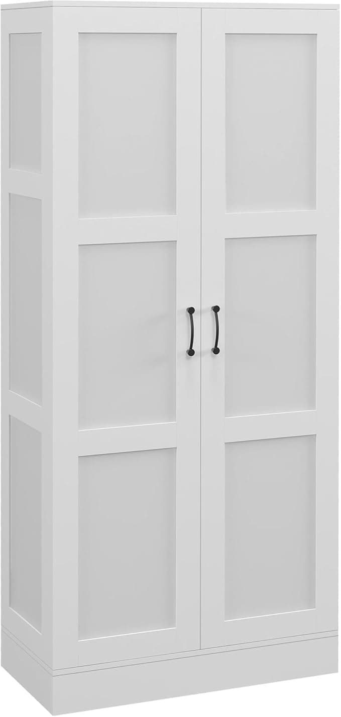 Log for a stylish and versatile storage solution to improve your home organization? Look no further than this 71" Tall Modern Buffet Cabinet. Standing at an impressive height, this cabinet offers ample space to store a variety of items, making it perfect for both pantry needs and general household organization. Customize & Organize: This cabinet features three adjustable shelves, each spaced 2.5" apart and customizable to three different heights. Easily configure your shelves to fit your specific storage needs, whether it's pantry staples, dining essentials, or decorative items. Whisper-Quiet Convenience: Say goodbye to noisy, slamming doors! Smooth, self-closing mechanisms ensure a quiet and gentle close every time, protecting your belongings and providing a peaceful home environment. This handy feature also prevents pinched fingers, making it a safer option for families with children. Unwavering Durability: Crafted with sturdy melamine-coated particleboard, this cabinet is built to withstand the test of time. Its robust construction ensures long-lasting reliability, making it a worthy investment for your home organization needs. Sleek & Minimalist Design: The elegant white finish complements various decor styles, effortlessly blending into your existing aesthetic. Whether placed in your kitchen, dining room, or living room, this cabinet complements your space while providing valuable storage. Safety & Stability: This cabinet is equipped with an anti-tipping design, preventing it from toppling over and ensuring the safety of your family and belongings. Enjoy peace of mind knowing that your belongings are safely stored.