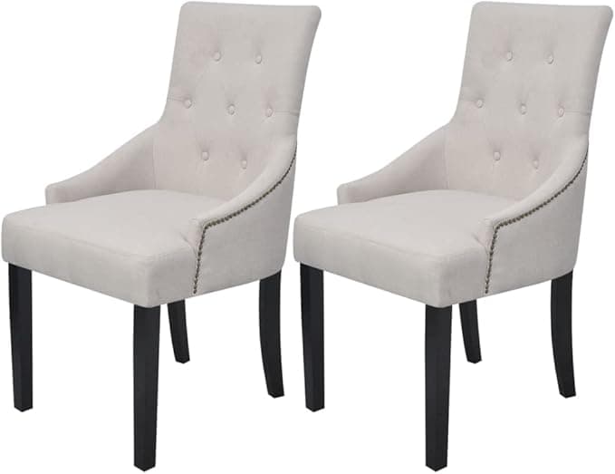 vidaXL 2X Sillas de Salón Comedor Clásica de Madera y Tapiceria de Tela Gris Crema