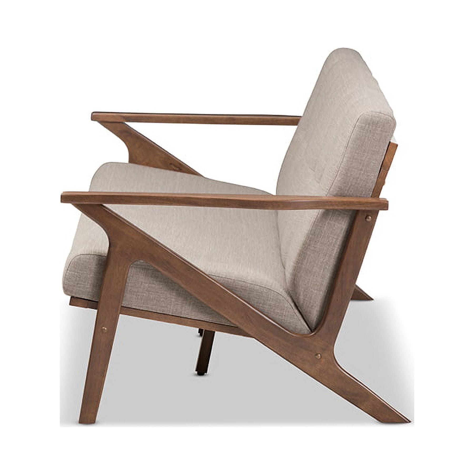 Baxton Studio Bianca Mid-Century Modern Walnut Wood Light Grey Fabric Tufted 3-Seater Sofa