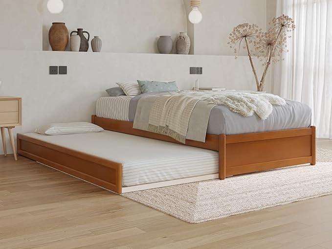 AFI, Barcelona Twin XL Panel Platform Bed with Twin XL Trundle, Light Toffee