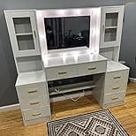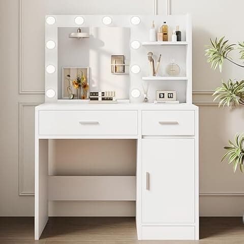 Buy UGTOO White Vanity Table with Drawer Dresser, Farmhouse Vanity Makeup Desk with Charging Station, Vanity Desk with Lights Mirror & Drawers for Makeup, Vanity Desk with Storage Shelf & 5 Drawers: Vanities & Vanity Benches - Amazon.com ✓ FREE DELIVERY possible on eligible purchases