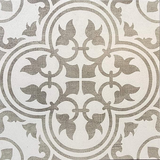 12x12 Flora Gray White Encaustic Ceramic Tile (one Piece)