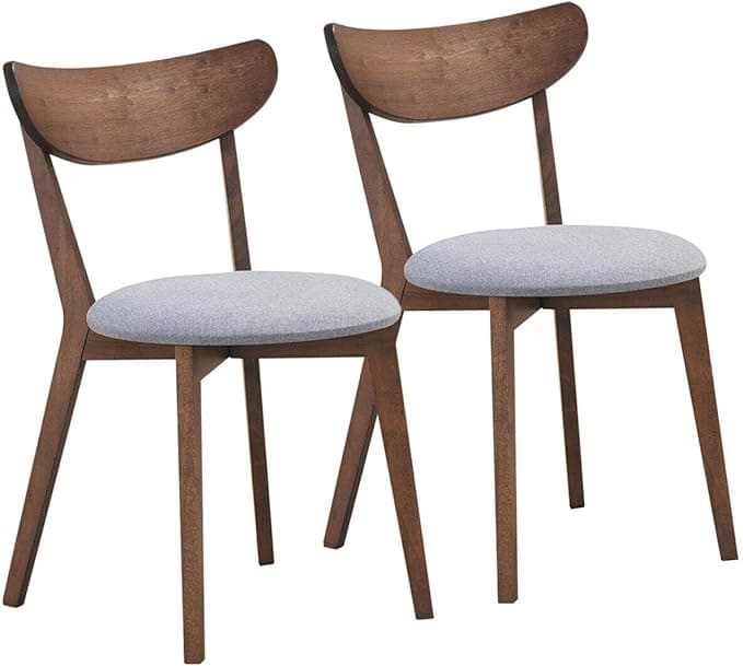 COSTWAY Dining Chairs Set of 2, Mid-Century Modern Kitchen & Dining Chairs with Curved Back and Cushioned Seat, Walnut Finished Wood Living Room Side Chairs for Kitchen, Dining Room, Bistro