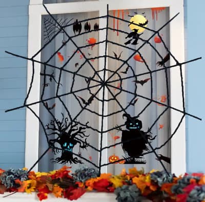 Black spider web spider Halloween decorations 5ft end to end, perfect size for Door and window or for spiderweb Halloween tablecloth.