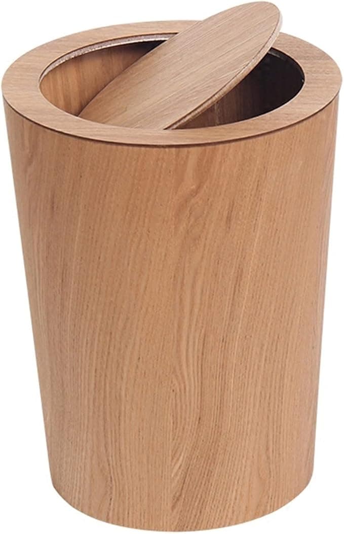 Natural Wood Rubbish Bin Shake Lid Waste Paper Basket, Ideal as a Kitchen, Bathroom, Office Round Garbage Can Versatile Trash Can (Color : B)