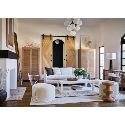 The Coastal Living Lounge Chair combines artistic design with comfort. Featuring acrylic backrests and a swivel base, it offers both form and functionality. Sea Salt wood accents add an elegant touch to any space. Its texture and color blend, with upholstered seats in Canberra Ivory, enhance its stylish appearance. With a seat height of 18 inches, this chair is perfect for relaxation during quiet evenings or gatherings.
