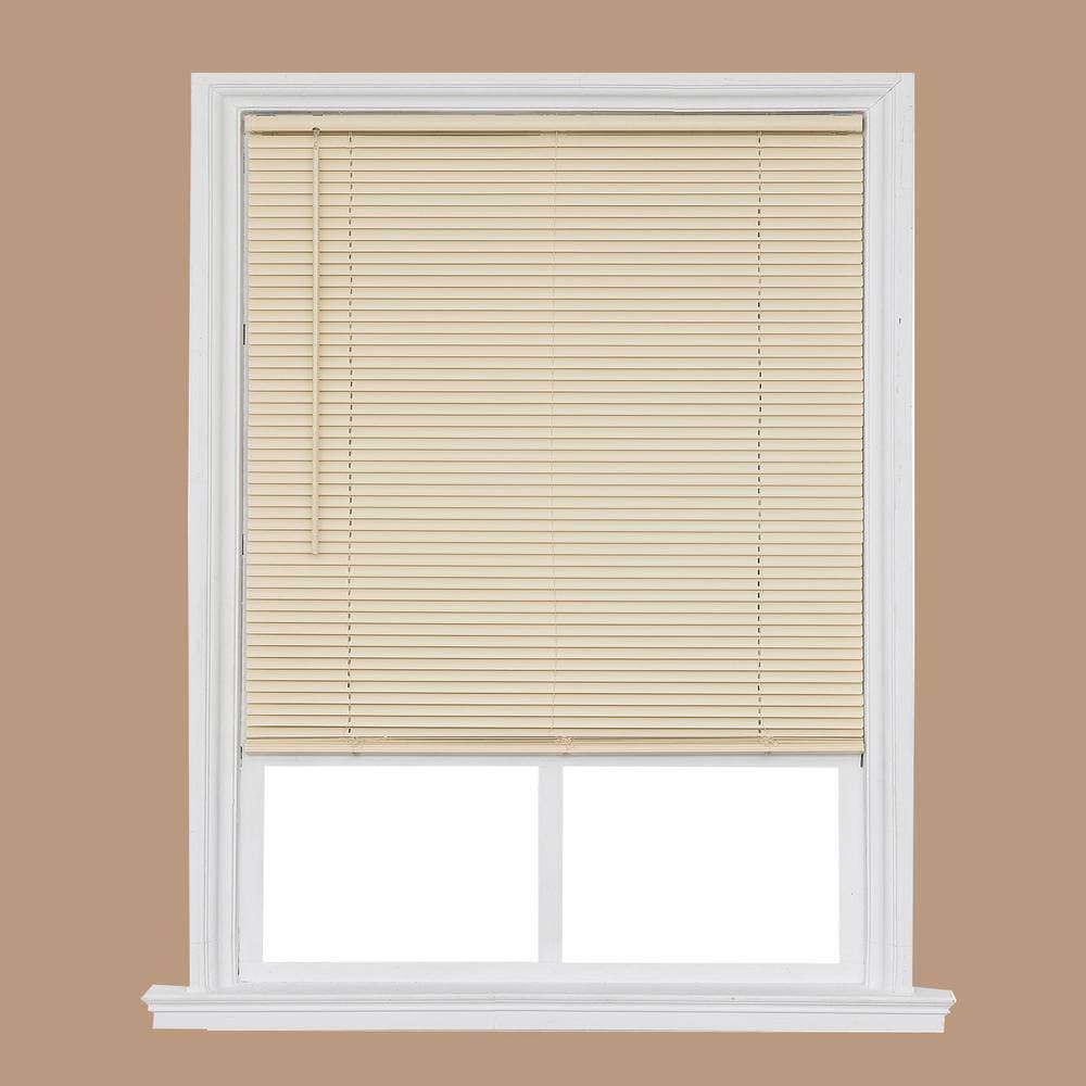 Bestow warmth and style to your space with the help of this affordable Home Basics Cut-to-Width Ivory Cordless Duplex Room Darkening Vinyl Mini Blind.